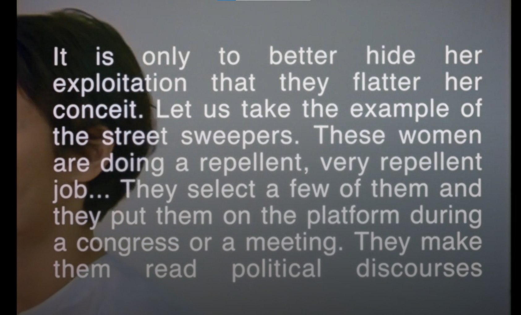 Our guiding voice brings us out of each image and unsettles the pace of what has hitherto been presented as a series of testimonies. We are now interrogating each image and mistruth. We are questioning the purpose of these constructed oral histories and what they tell us about women’s lives in Vietnam. In this sequence, Trinh’s words become as accusatory as a despotic producer, symbolic of the patriarchal film industry. The form of the interview is dismantled as antiquated and redundant.